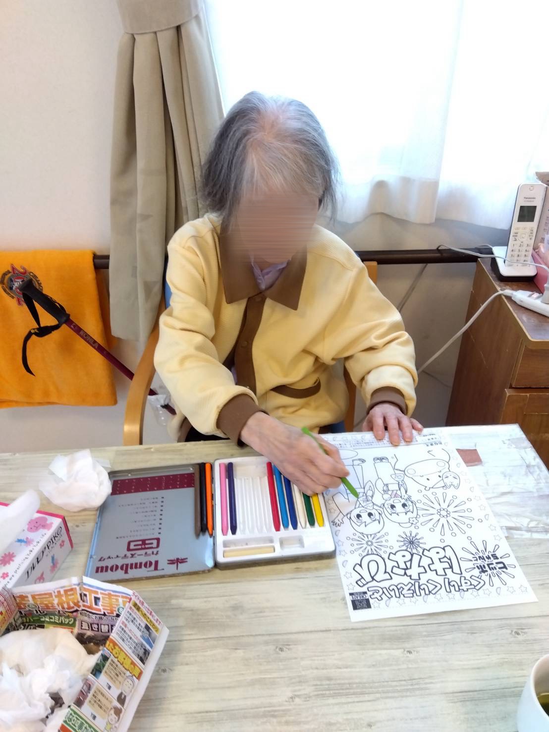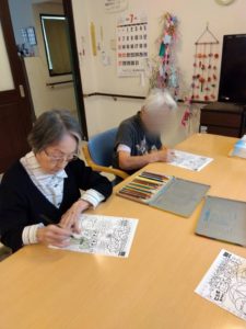 塗り絵なんて何十年ぶりかしら~と楽しくお話されながら沢山塗っていただきました✨️