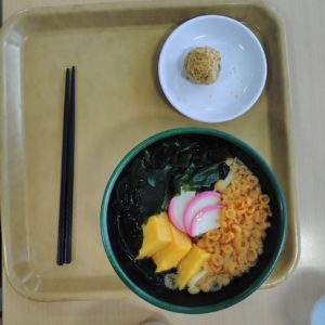 先日のお昼は冷たいうどんにきなこのおはぎでした。