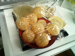 こちら小麦粉を丸く揚げたものに、穴を開けて