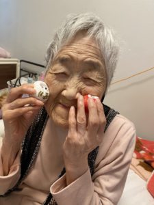 白いだるまには〝寿〟と書かれていて、
