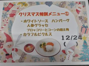 クリスマスということで厨房業者様が今日と明日で特別メニューをご用意下さいました。
