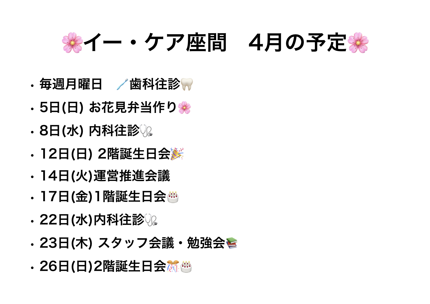 イー・ケア座間 🌸4月の予定🌸